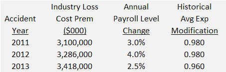 Here, annual payroll level change should be interpreted as: 2.5% from 2012 to 2013 (the value is for the to-year). \(=\dfrac{\text{Current}}{\text{Previous}}\)