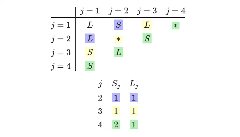 - Count \(L\)'s and \(S\)'s in each diagonal