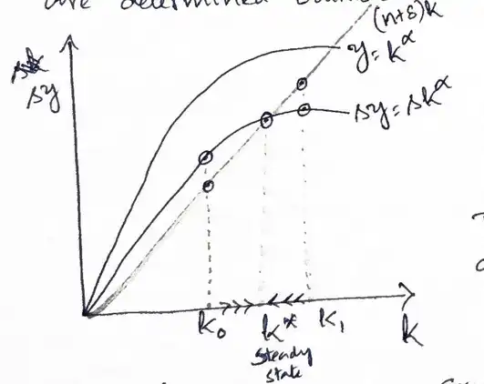 Here there are two curves, the production function, using which \(sy\) is derived, which is gross investment per worker.