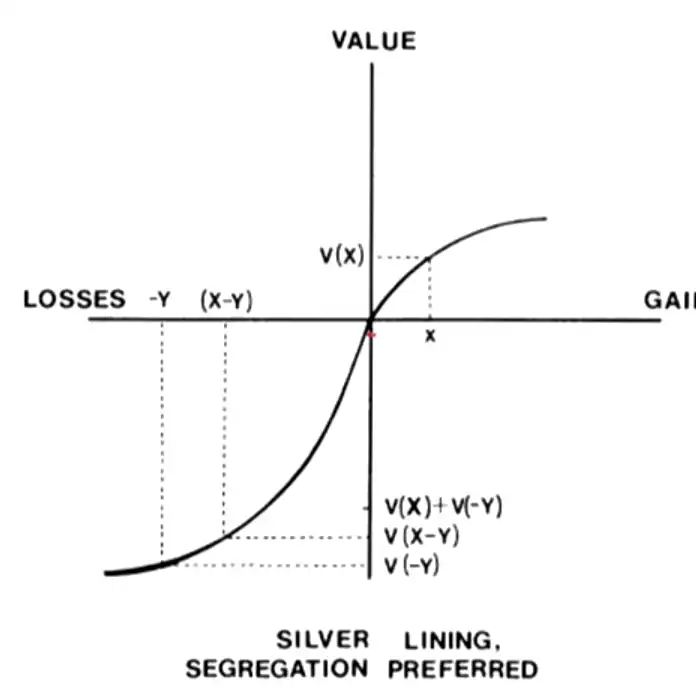 - Segregate small gains (silver lining) from larger losses (gain function is steepest at origin, utility of a small gain \(\gg\) utility of slightly reducing a large loss)