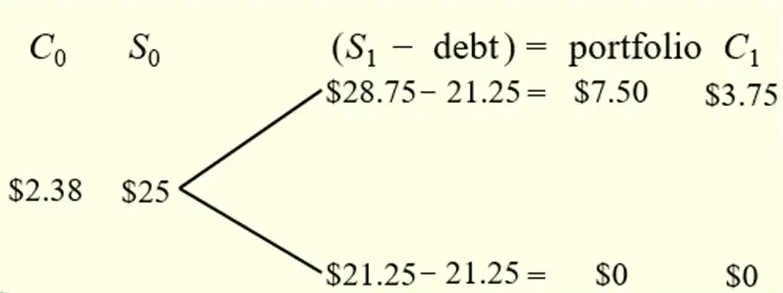 Thus, value the call option today as half the value of levered-equity portfolio (the expected value of the portfolio.)